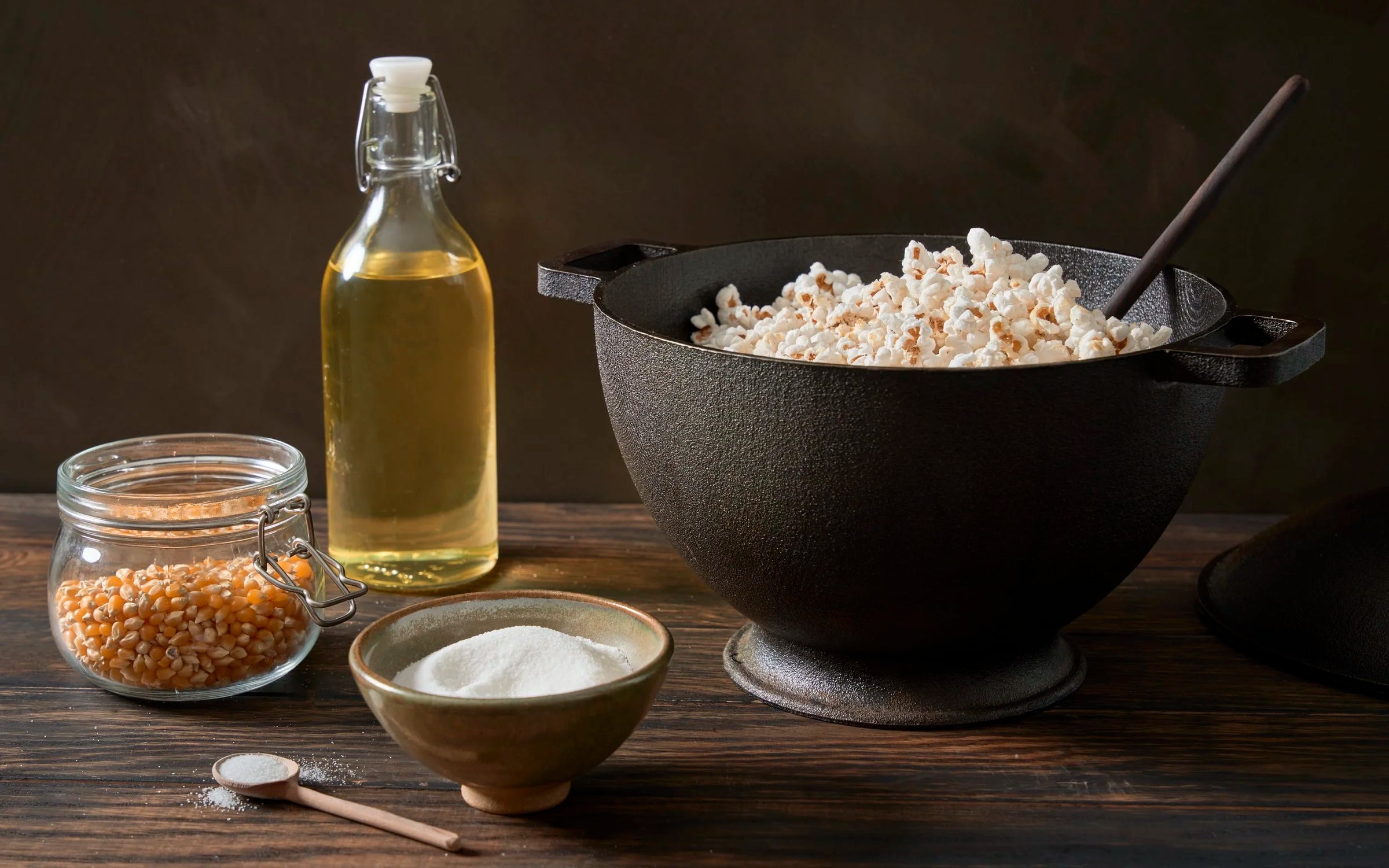 With the patented Signature Kettle, just add oil and kernels and cover with the lid - that is all. For more recipes, see below! Popcorn can be stored in the kettle for approximately one week.